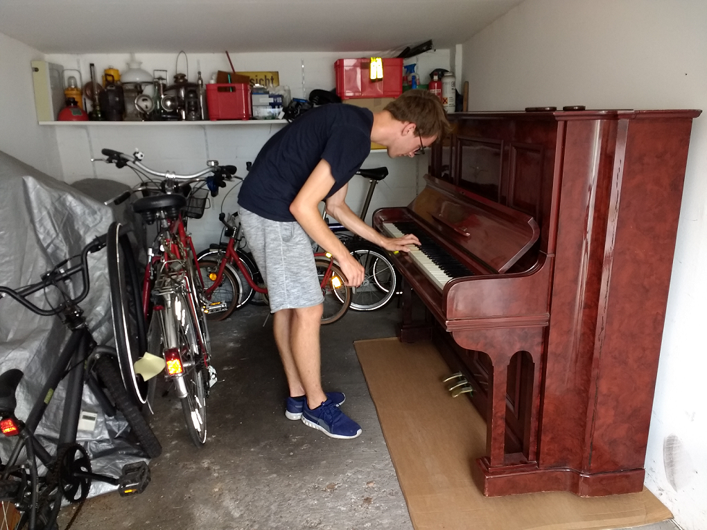Alles ging gut, und das gute Stück wurde in der Garage platziert. Die Jugendlichen kamen zur Begutachtung und waren hellauf begeistert von diesem ungewöhnlichen Klavierübungsraum mit seinem speziellen Ambiente. Sie hauten mit ungewohnter Ausdauer in die Tasten und übten gleich mehrere Musikstücke hintereinander.